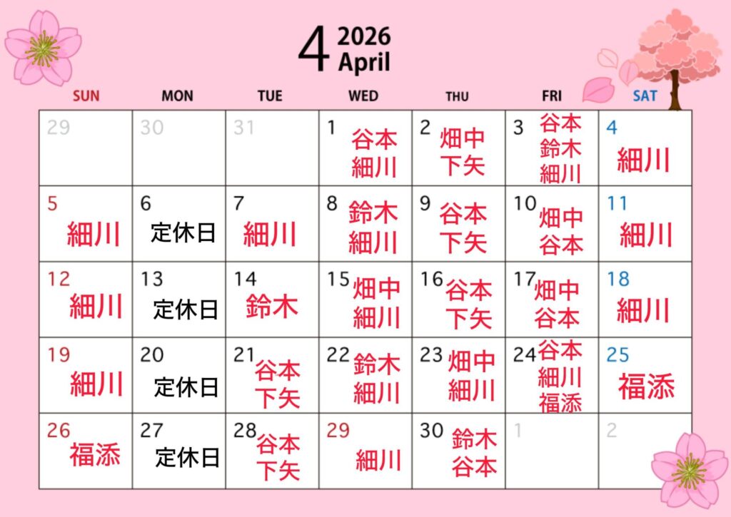 4月のスタッフ公休です!