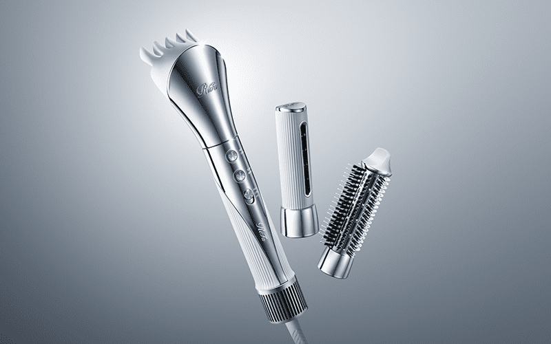 リファビューティーリセッターのおすすめポイントを、簡単にまとめました! 1. スタイリングがこれ1本で完結! • 髪を乾かす、根元を立ち上げる、セットする、の全てがアタッチメントの交換だけで可能です。 2. 軽くて使いや